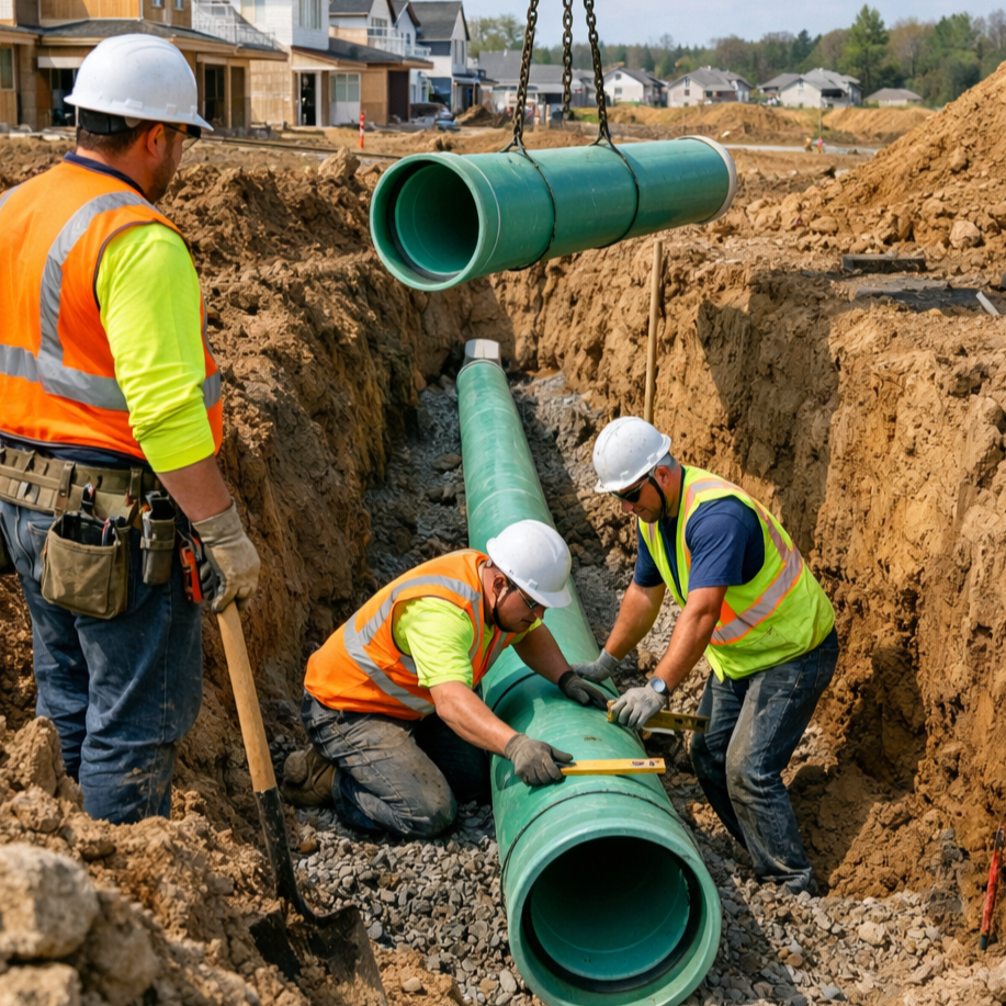 We provide complete sanitary sewer installation services for residential, commercial, and land development projects. Our work includes excavation, pipe installation, manholes, connections, testing, and backfill in accordance with local codes and engineered plans. From new construction to system extensions and replacements, we deliver reliable, code-compliant sewer infrastructure built for long-term performance.